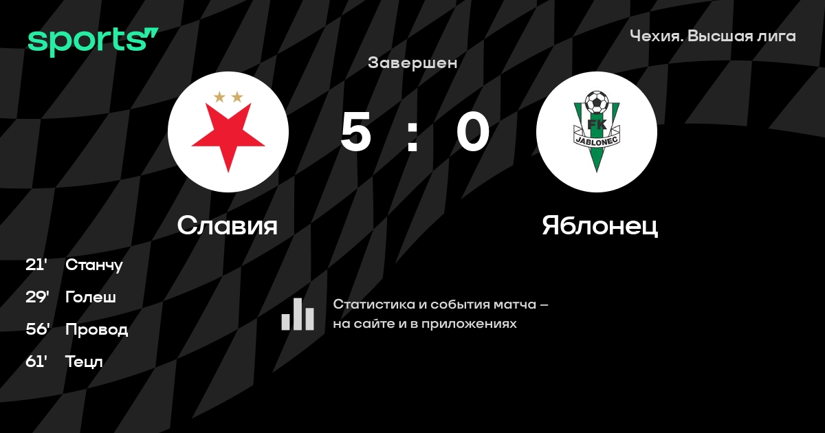 Трансляция Славия - Яблонец
