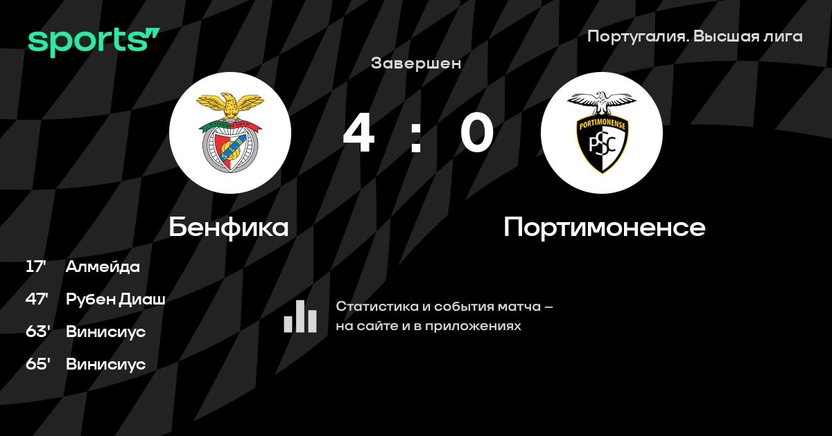 Влаходимос - Гримальдо, Жардел, Рубен Диаш, Алмейда - Серви, Габриэл, Самарис, Жедсон Фернандеш - Шикинью, ВинисиусЗапасные: Злобин, Ферру, Томаш Тавареш, Пицци, Таарабт, Жота, Сеферович
