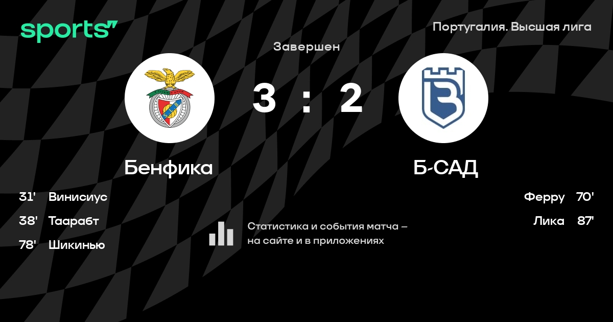 Влаходимос - Гримальдо, Ферру, Рубен Диаш, Алмейда - Серви, Рафа Силва, Таарабт, Вайгль, Пицци - ВинисиусЗапасные: Злобин, Жардел, Томаш Тавареш, Габриэл, Шикинью, Жота, Сеферович