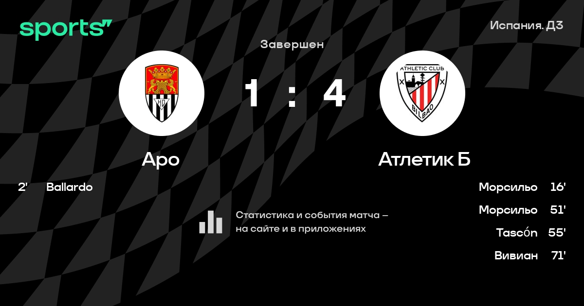 Эскьета - Rojo Sagarna, Вивиан, Сильеро, Murúa Alzueta - Сансет, Salado Góngora, Венседор, Саррага - Tascón Hermida, МорсильоЗапасные: Иру, Аресо, Гарсия де Альбенис, Луэнго, Сан-Бартоломе, Баке, Azcona Mayayo