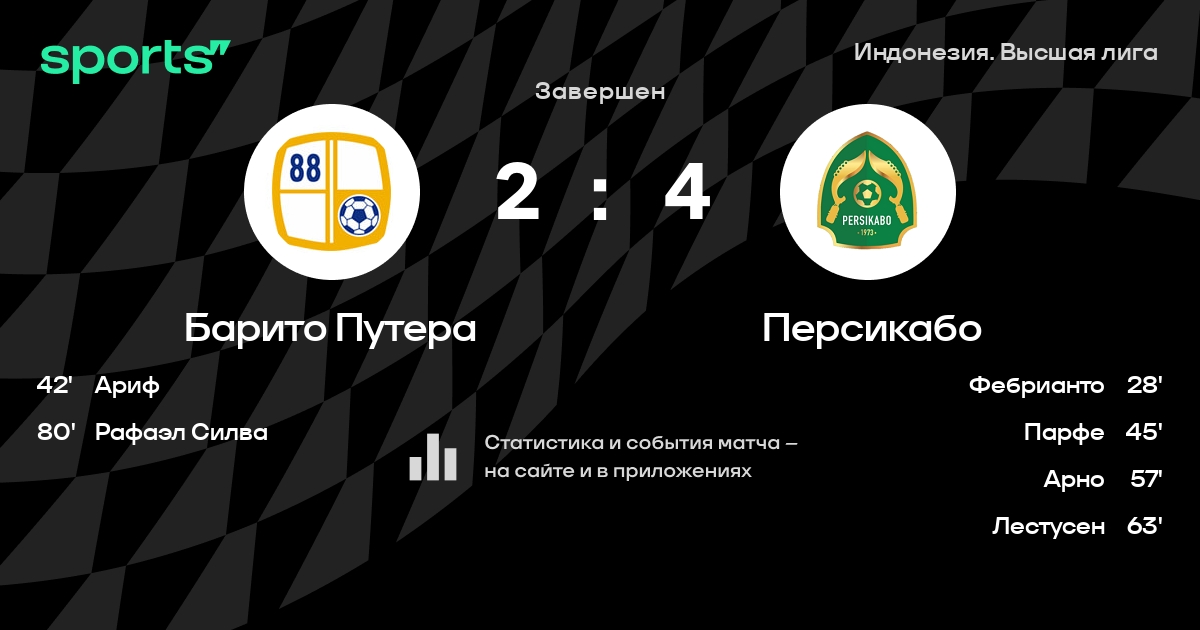 Харлан - Нурзайдин, Лукас Силва, Моним, Бероперай - Сетиаван, Прадана, Рипора, Димас - Ариф, АдситЗапасные: Ю Чжэ Ун, Ибо, Абдулкак, Саюри, Фердианщах, Ситанган, Рафаэл Силва