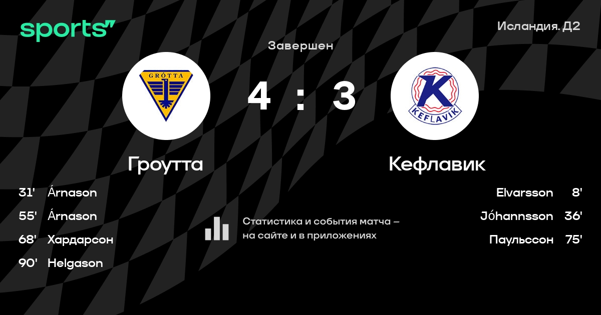Вальдимарссон - Тоурдарсон, Guðjónsson, Leósson, Baldursson, Helgason - Торласиус, Микаэльссон - Хардарсон, Pétursson, ÁrnasonЗапасные: Матисен, Melsted, Karlsson, Jónsson, Guðjónsson, Björnsson, Тордарсон