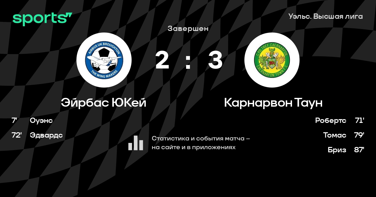 Эйрбас ЮКей - Карнарвон Таун: составы на матч
