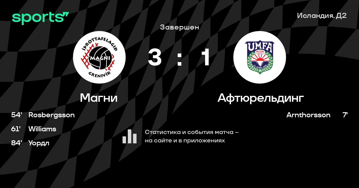 Auðunsson - Sigurgeirsson, Уордл, Birgisson, Halldórsson, Gautason - Williams, Petursson, Sigþórsson - Rósbergsson, SölvasonЗапасные: Arnþórsson, Sigurbjörnsson, Stefansson, Jóhannsson, Hafsteinsson, Gautason, Sverrisson