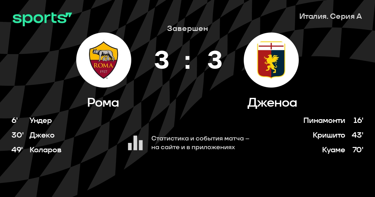 Лопес - Коларов, Жезус, Фасио, Флоренци - Пеллегрини, Кристанте, Дзаньоло, Клюйверт, Ундер - ДжекоЗапасные: Фузато, Миранте, Манчини, Сантон, Диавара, Пасторе, Верету, Дзаппакоста, Антонуччи, Шик