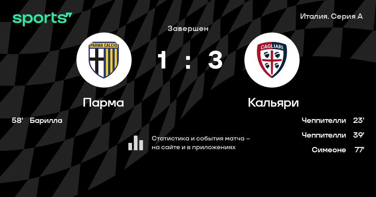 Ольсен - Пеллегрини, Пизакане, Чеппителли, Каччаторе - Рог, Чигарини, Нандес, Кастро - Жоао Педро, СимеонеЗапасные: Арести, Биттенкур, Клаван, Ликояннис, Пинна, Валюкевич, Бирса, Дейола, Ионицэ, Олива, Черри, Рагатцу