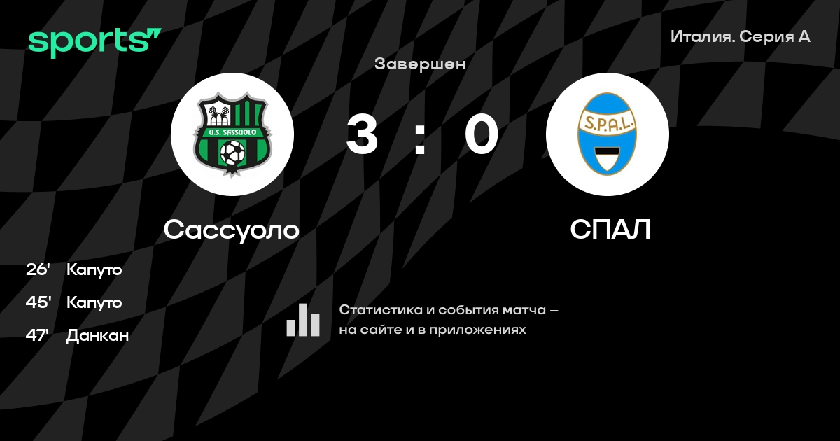 Консильи - Пелузо, Феррари, Кирикеш, Толян - Траоре, Обианг, Данкан - Капуто, Дефрель, БерардиЗапасные: Пеголо, Руссо, Кирьякопулос, Мюльдюр, Романья, Трипальделли, Гион, Локателли, Маццителли, Бога, Распадори