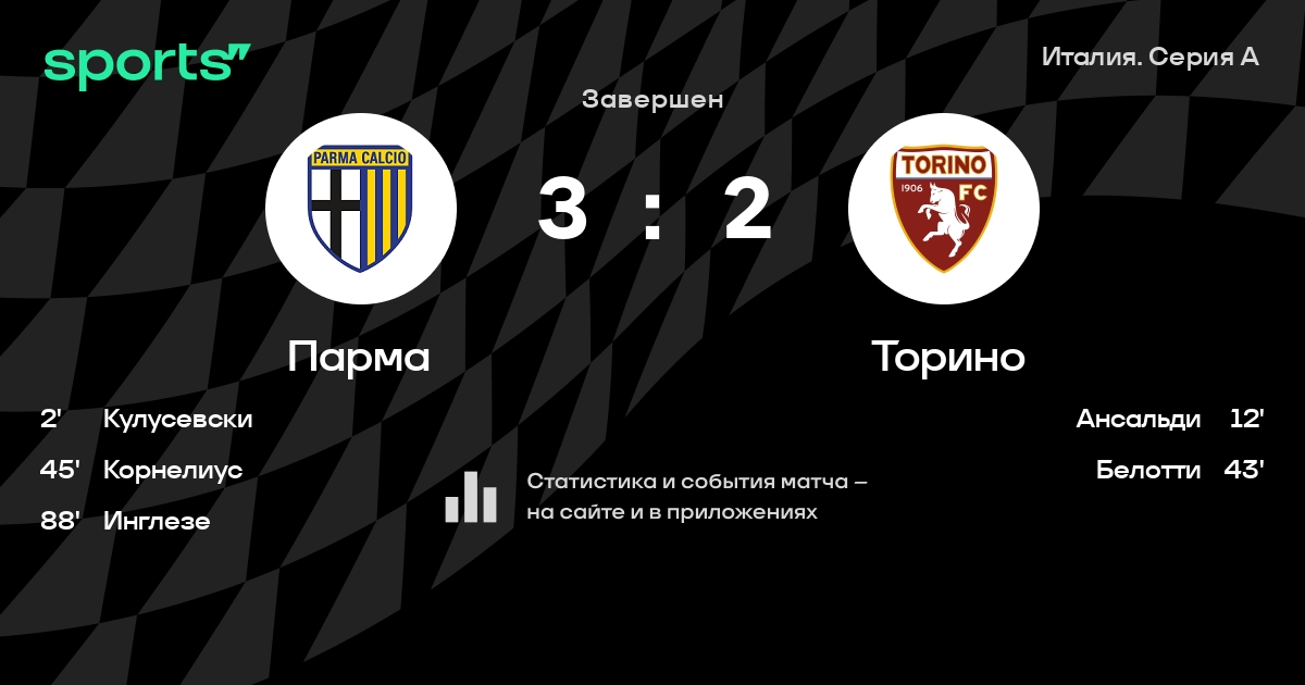 Сиригу - Бремер, Нкулу, Иццо - Айна, Верди, Мейте, Базелли, Ринкон, Ансальди - БелоттиЗапасные: Розати, Уйкани, Бонифаци, Де Сильвестри, Джиджи, Лаксальт, Войнович, Лукич, Беренгер, Яго Фальке, Миллико, Дзадза