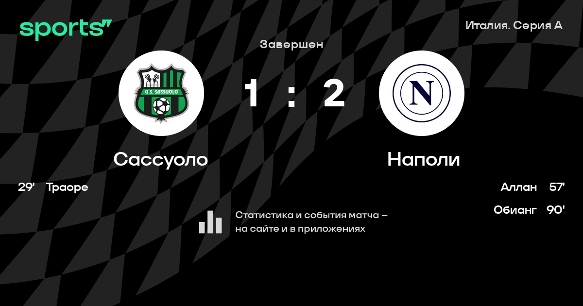 Пеголо - Кирьякопулос, Пелузо, Марлон, Мюльдюр - Локателли, Обианг, Траоре, Данкан, Бога - КапутоЗапасные: Руссо, Турати, Феррари, Рожерио, Романья, Трипальделли, Бурабия, Маццителли, Джуричич, Оддей, Распадори