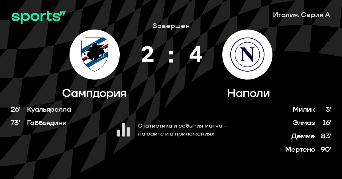 Чемпионат Италии. «Наполи» победил «Сампдорию» – 4:2