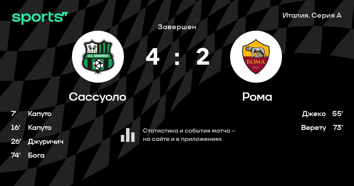 «Рома» пропустила 3 гола в стартовые 30 минут игры в Серии А впервые с 2012 года
