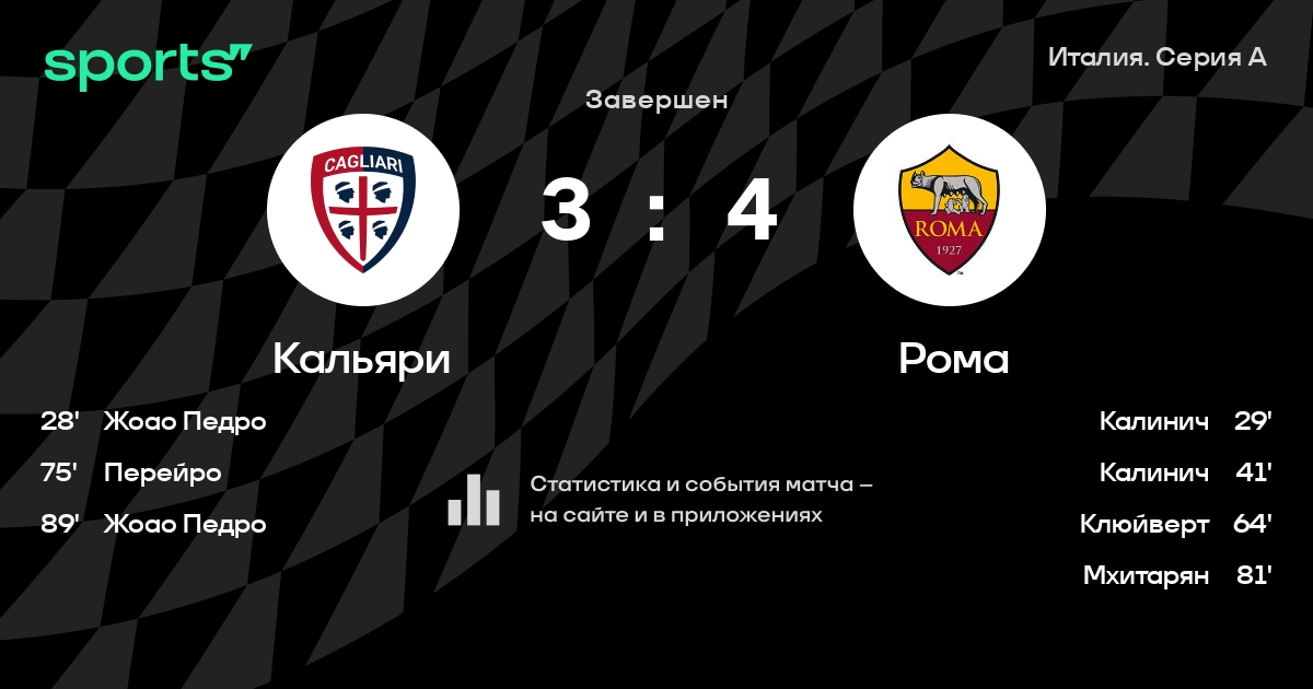Ольсен - Пеллегрини, Клаван, Пизакане, Каччаторе - Наингголан, Жоао Педро, Рог, Олива, Ионицэ - ПалоскиЗапасные: Краньо, Биттенкур, Карбони, Ликояннис, Маттьелло, Валюкевич, Бирса, Чигарини, Ладинетти, Перейро, Рагатцу, Симеоне
