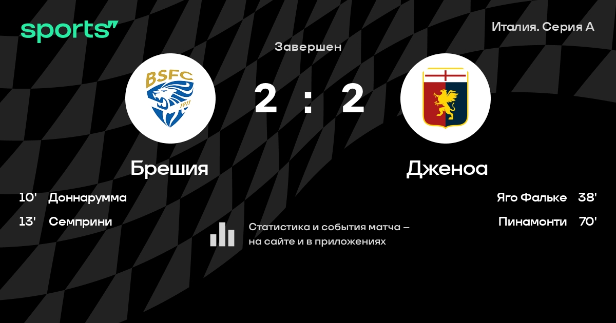 | 19 | Брешия | 38 | 6 | 7 | 25 | 35 | 79 | -44 | 25 | ||