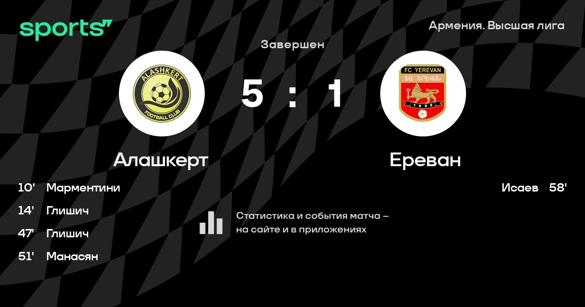 Чанчаревич - Баранов, Дагбашян, Милькович, Тиаго Камета, Восканян - Григорян, Галвао, Марментини - Глишич, МанасянЗапасные: Манукян, Ишханян, Айрапетян, Погосян, Кадимян, Шагинян, Едигарян, Танков
