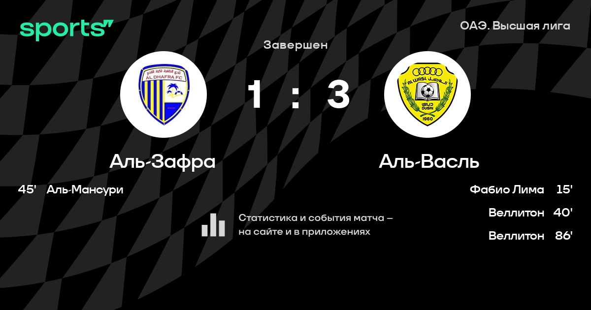 Абдулла - Себиль, Галвао, Al Hammadi, Джума - Салмин, Аль-Балуши, Al Balooshi, Салех, Салех, Фабио Лима - Запасные: Абдулла, Двубенг, Натан Фелипе, Халиль, Мохаммад, Али, Гайбор, Исмаил, Веллитон, Ахмад