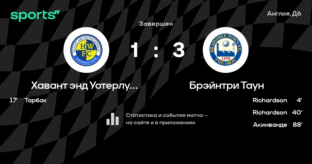 Хавант энд Уотерлувилл - Брэйнтри Таун: составы на матч