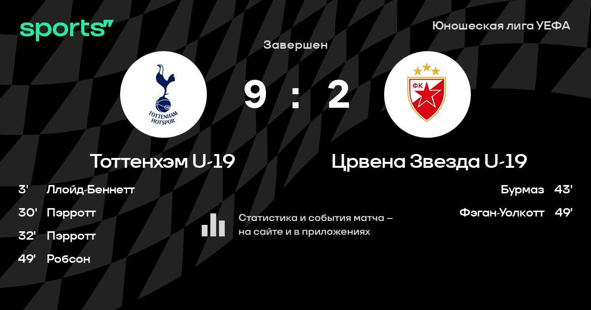 Трансляция Тоттенхэм U-19 - Црвена Звезда U-19