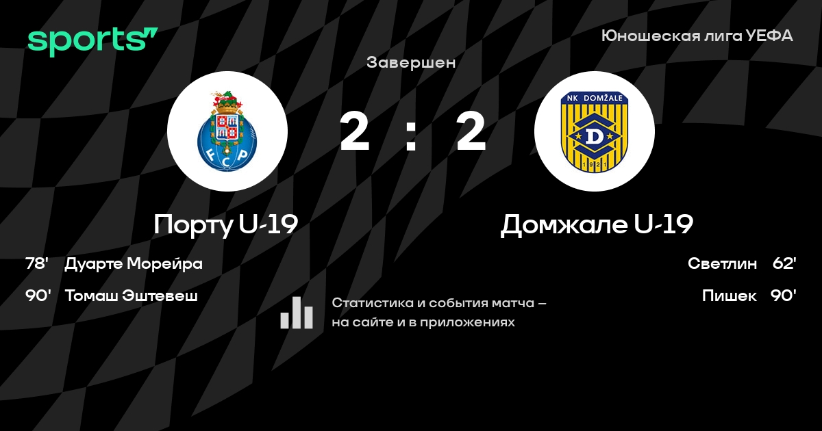 Порту U-19 - Домжале U-19: составы на матч от 6 ноября 2019