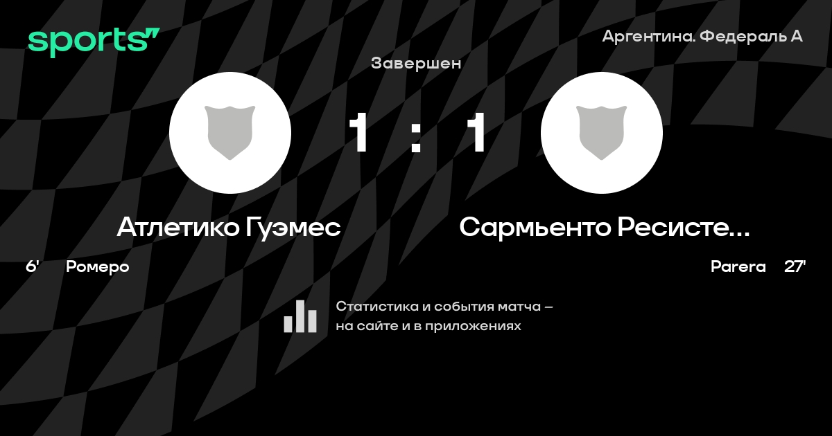 Трансляция Атлетико Гуэмес - Сармьенто Ресистенсия