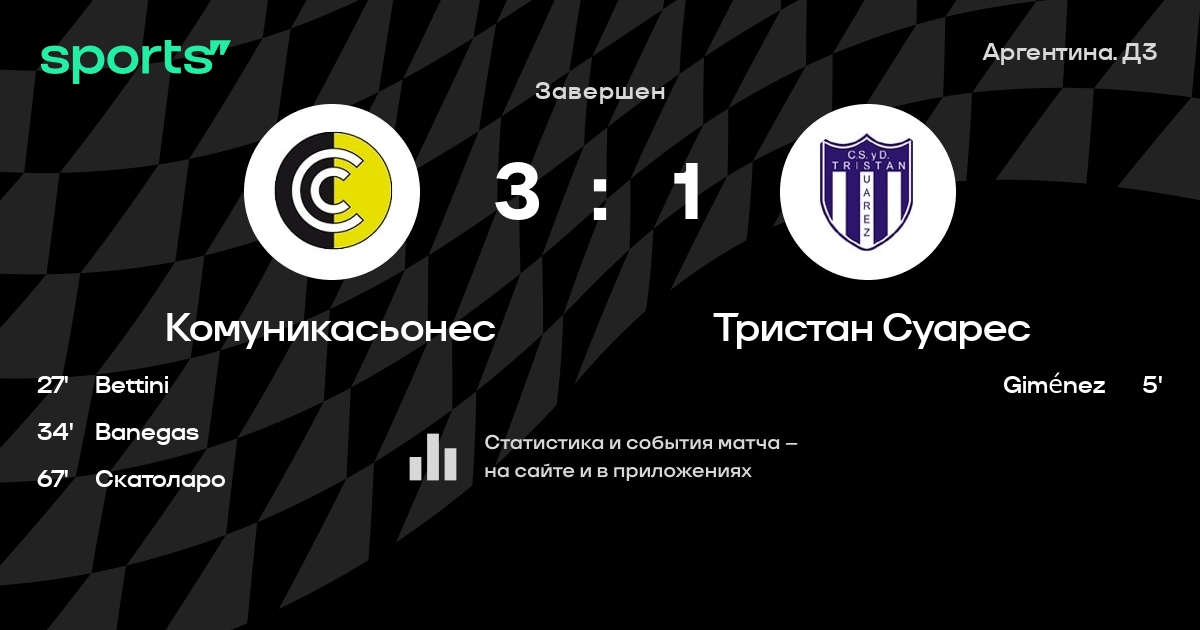 Комуникасьонес – Тристан Суарес: коэффициенты