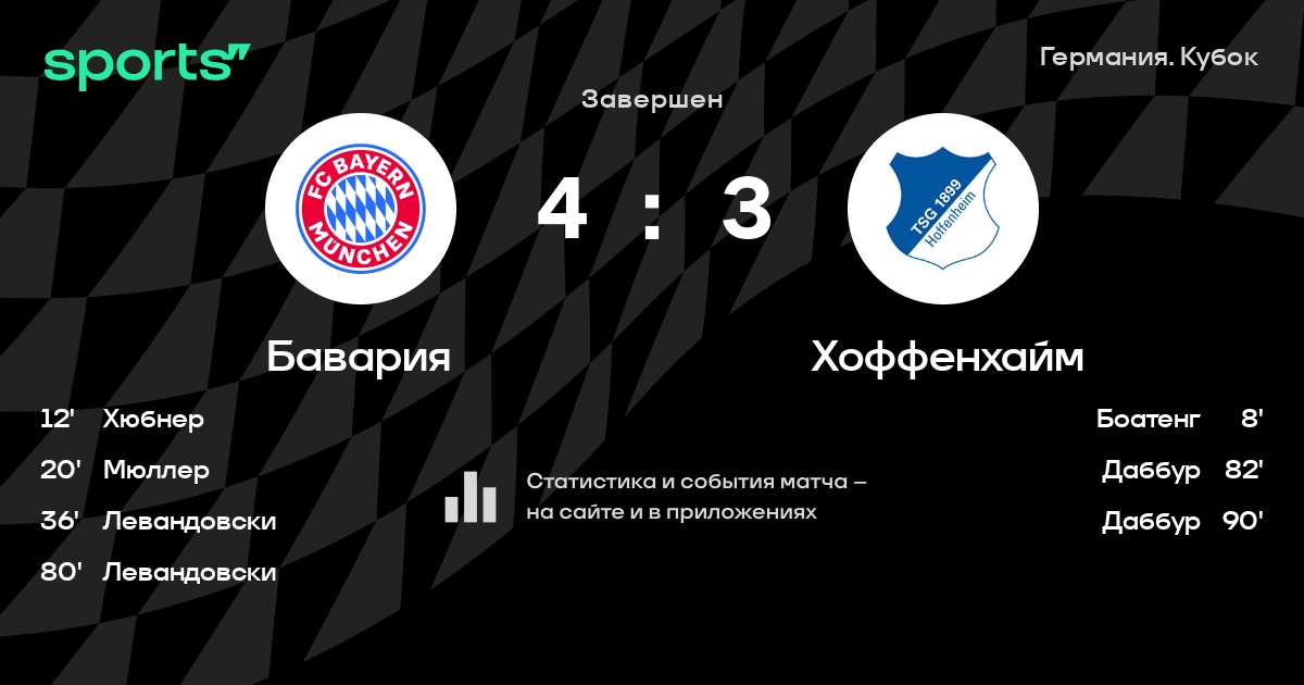 «Бавария» вышла в 1/4 финала Кубка Германии, победив «Хоффенхайм» (4:3)