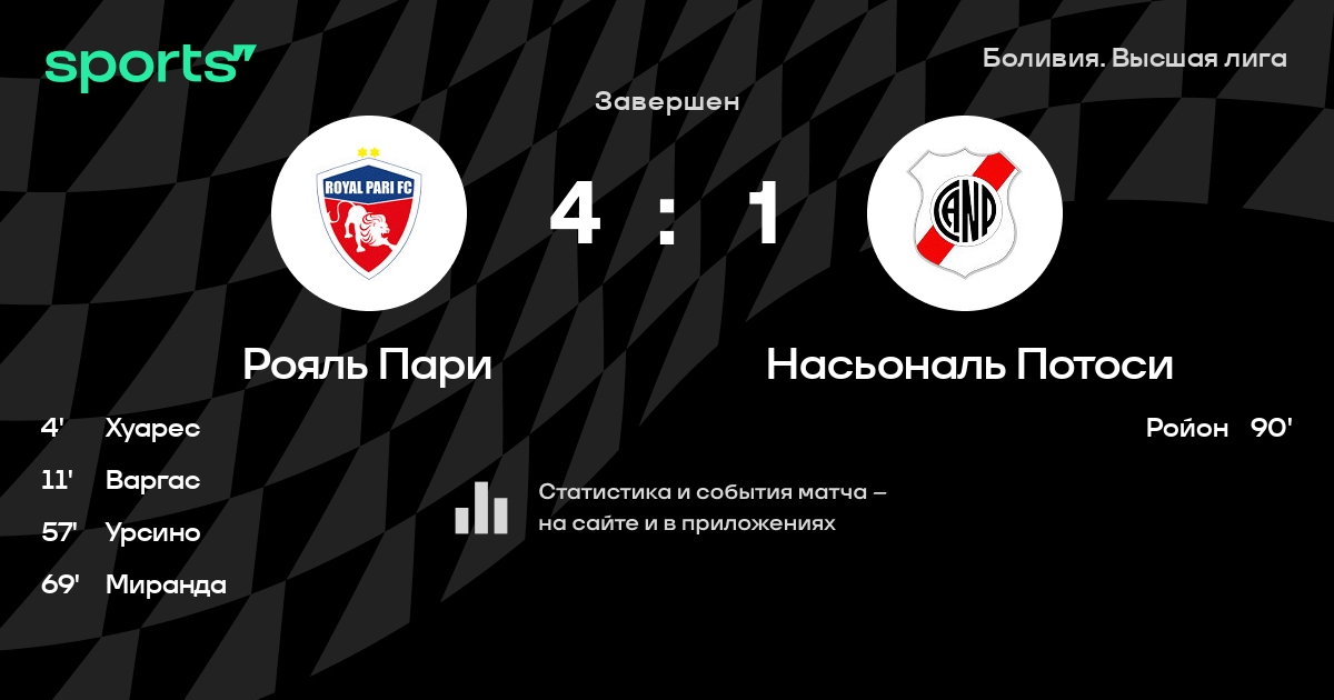 Мендес - Сеспедес, Хуарес, Брау, Виррейра - Лисио, Барриос, Урсино - Томианович, Варгас, МирандаЗапасные: Араус, Антело, Фигероа, Тиаго, Силес, Эрнандес, Кабрера