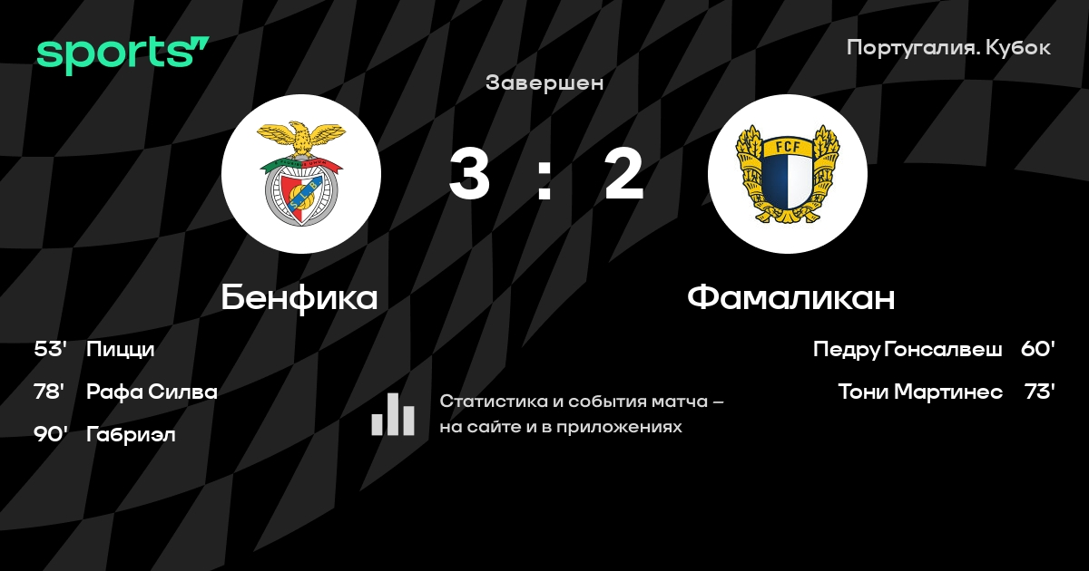 Влаходимос - Гримальдо, Жардел, Рубен Диаш, Алмейда - Таарабт, Габриэл, Серви, Шикинью, Пицци - СеферовичЗапасные: Злобин, Ферру, Томаш Тавареш, Рафа Силва, Флорентину, Винисиус, Жота