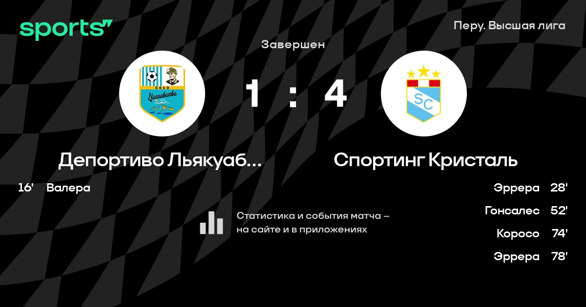 Трансляция Депортиво Льякуабамба - Спортинг Кристаль