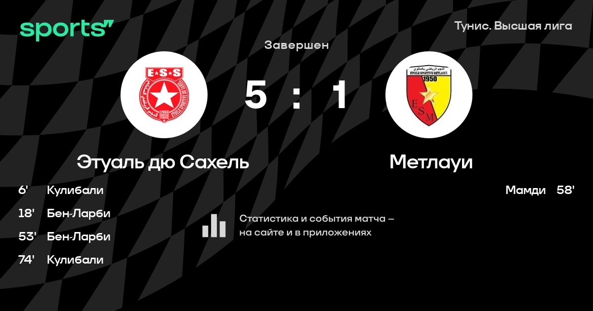 Матлути - Ben Aziza, Кешрида, Sallemi - Гонсалес, Бен-Уаннес, Мсакни, Бен-Амор, Бен-Ларби, Метнани - Кулибали