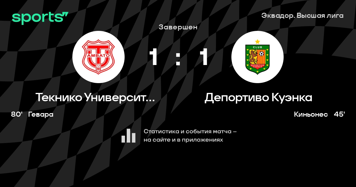 Трансляция Текнико Университарио - Депортиво Куэнка