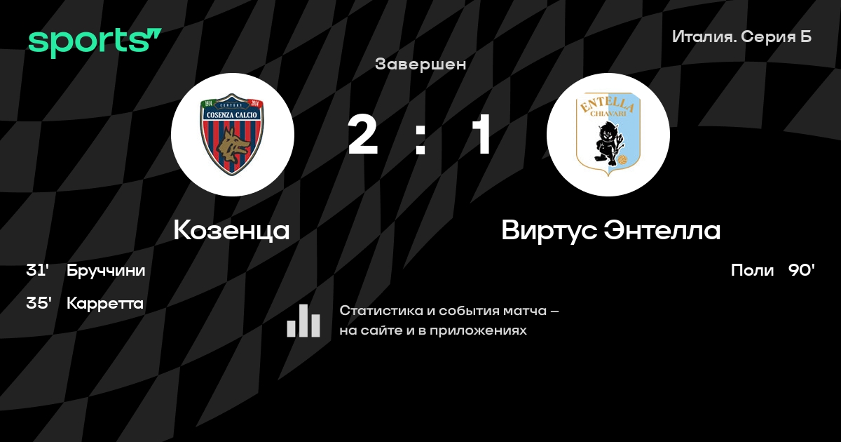 Козенца – Виртус Энтелла: коэффициенты