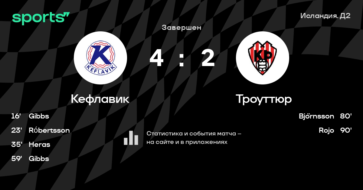 Olafsson - Heras Anglada, Сигургейрссон, Gudlaugsson - Jóhannsson, Elvarsson, Williams, Guðmundsson, Gudnason - Robertson, Arthur GibbsЗапасные: Smárason, Magnússon, Нганду, Valsson, Ингоульфссон, Viðarsson, Guðmundsson