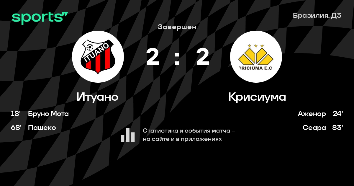 Пегорари - Жулиньо, Суэлитон, Лео, Пашеко - Серрато, Паулиньо Диас, Эдуардо - Баррос, Бруно Мота, МаркиньосЗапасные: Oliveira Barreto, Лео Дуарте, Матеус, Лео Риго, Соутто, Корреа, Гильерме, Луис Пауло, Лео, Габриэл Билл, Матеус Барбоза