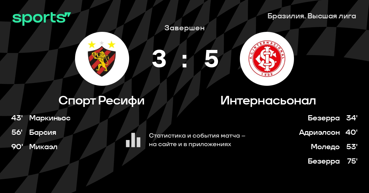 | 15 | Спорт Ресифи | 38 | 12 | 6 | 20 | 31 | 50 | -19 | 42 | ||