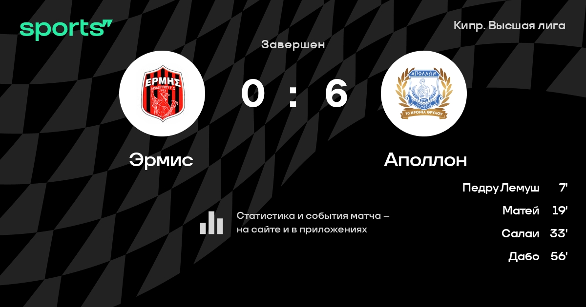 Каике - Деметриу, Сиссоко, Роберто Диас, Педру Лемуш - Уэсли Диас, Аиртон, Йебли, Рафинья, Мейра - РушиасЗапасные: Antoniou, Firinidis, Noum Oum, Пантели, Gavriel, Okoh, Kaiserlidis, Папатанасиу, Constantinou