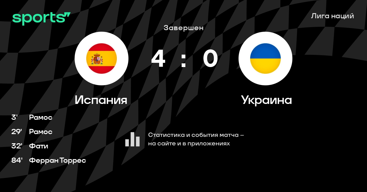 Украина уступила Испании 0:4, повторив свое самое крупное поражение в истории