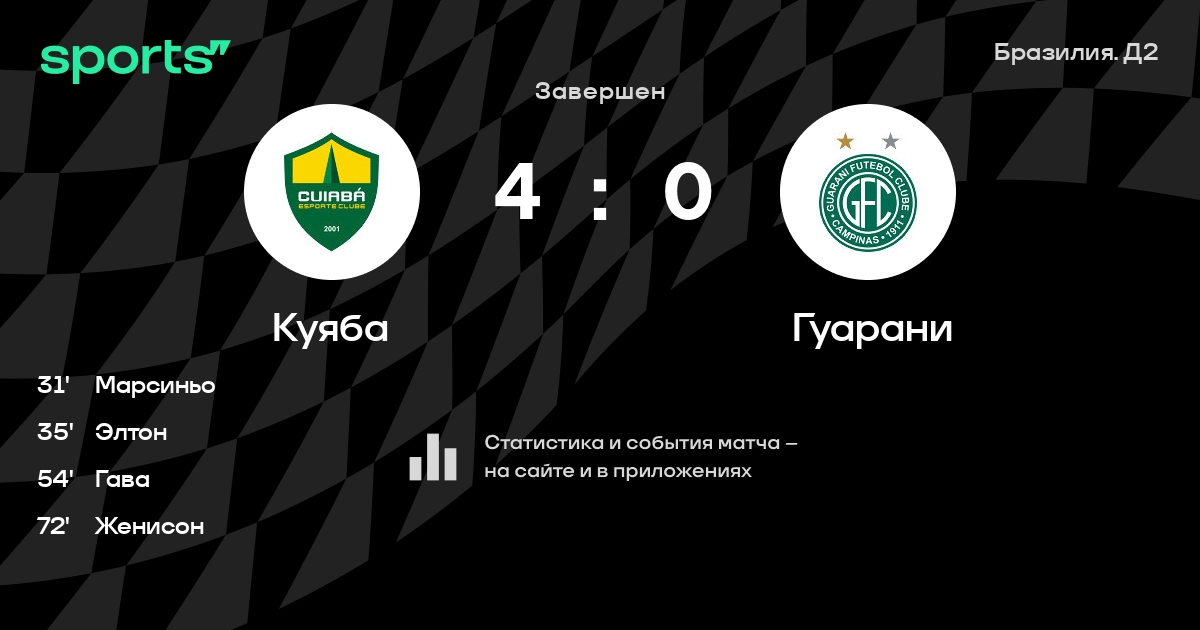 | 4 | Куяба | 38 | 17 | 10 | 11 | 48 | 40 | +8 | 61 | ||