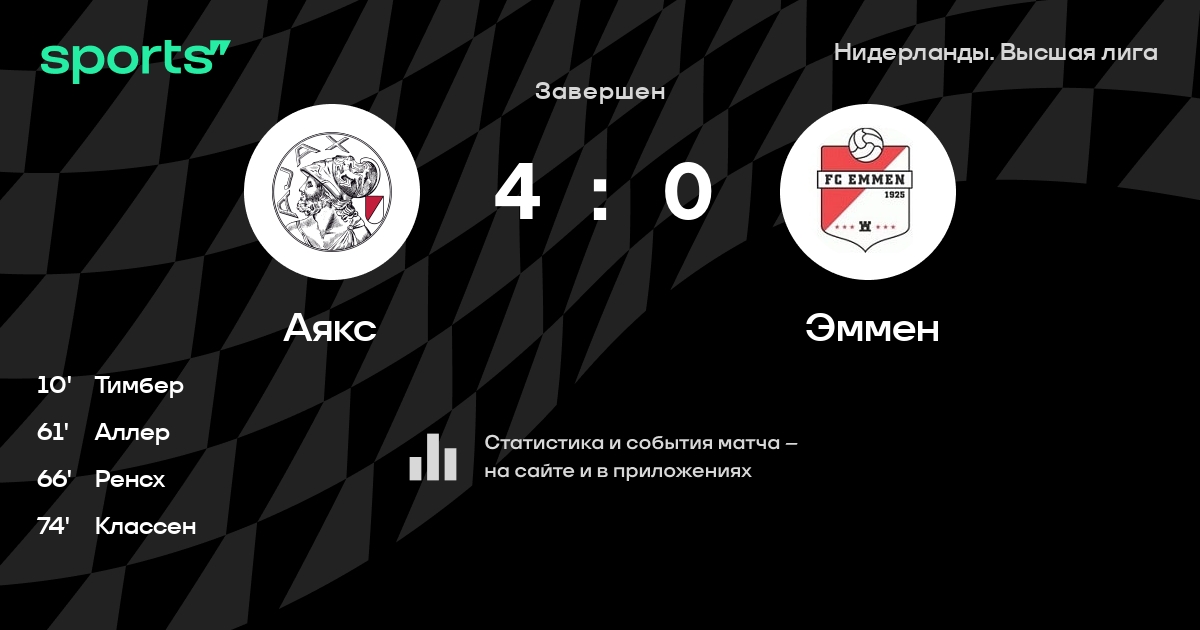Аякс – Эммен: Аякс побеждает в 6 последних очных матчах