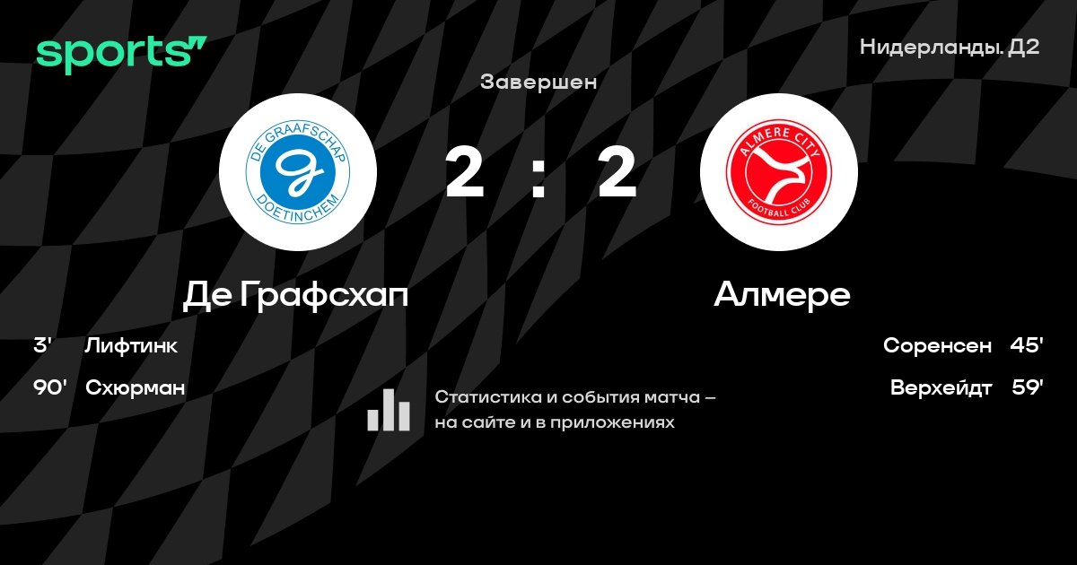 Де Графсхап – Алмере: Де Графсхап не проигрывает в 5 из 7 последних матчей против этого соперника