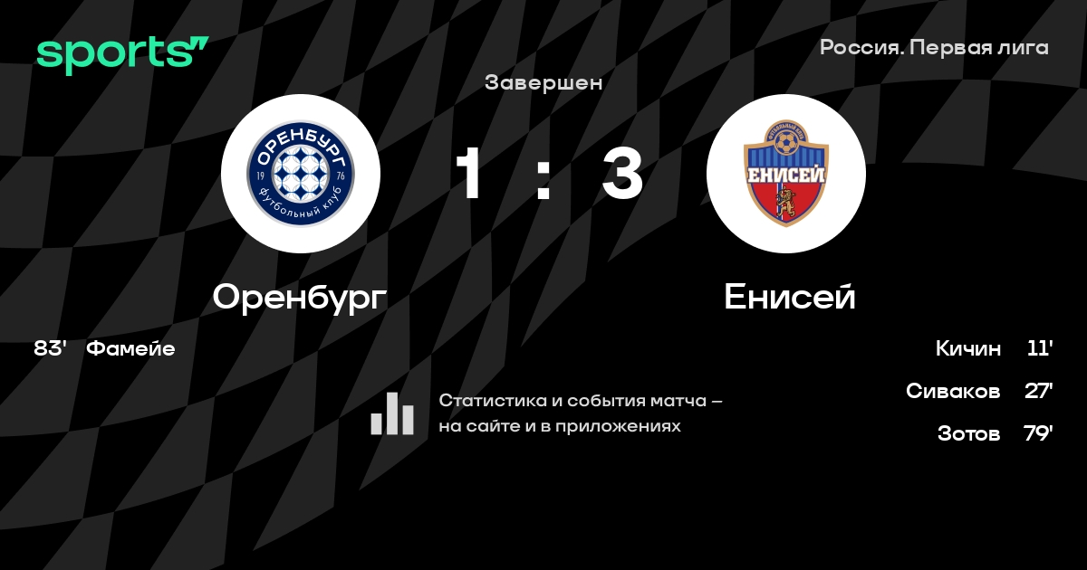 «Оренбург» прервал рекордную серию без поражений в ФНЛ, уступив «Енисею» (1:3)