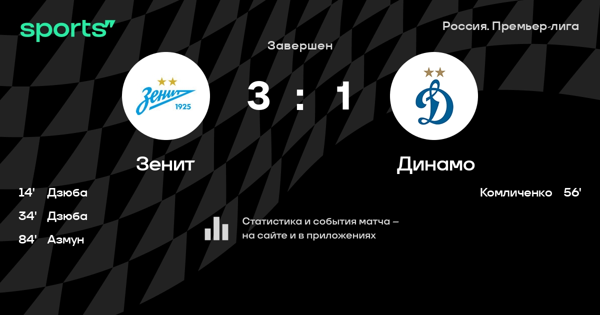 Зенит – Динамо: Зенит побеждает в 8 последних очных матчах дома