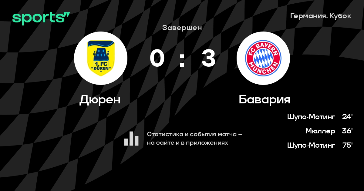 Нюбель - Дэвис, Дж. Боатенг, Зюле, Сарр - Рока, Мартинес, Мусиала, Дуглас Коста, Мюллер - Шупо-МотингЗапасные: Хоффманн, Лунгвитц, Зенкбайль, Онтужанс, Штиллер, Арп, Даяку, Зиб