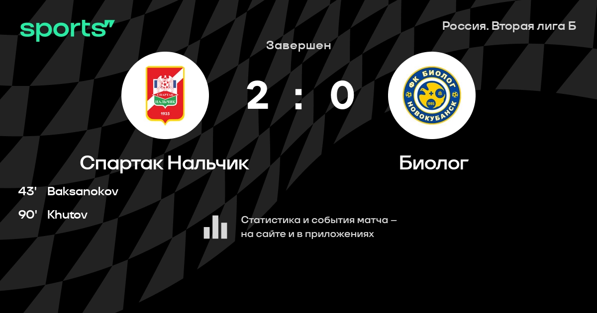 Спартак Нальчик – Биолог: Биолог не проигрывает в 6 из 8 последних матчей против этого соперника в турнире «Россия. Олимп-ПФЛ»