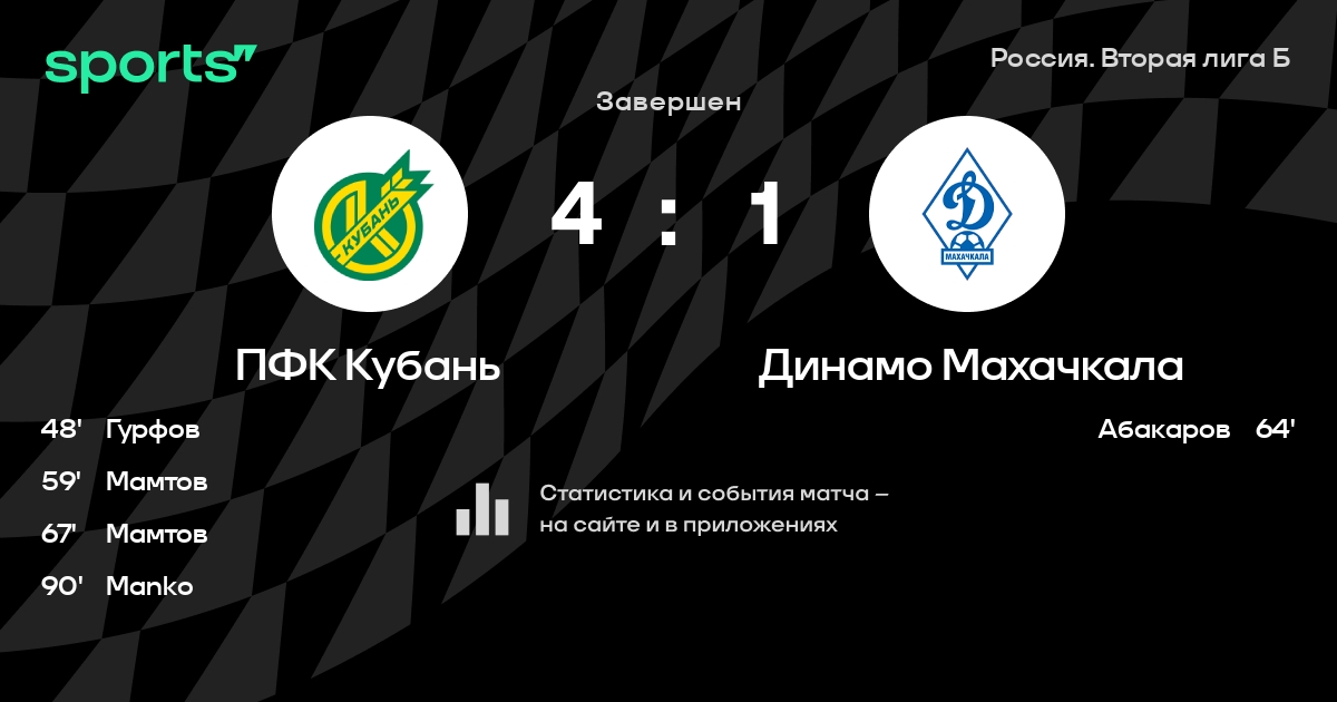 Кубань – Махачкала: Кубань побеждает в 3 последних очных матчах в турнире «Россия. Олимп-ПФЛ»