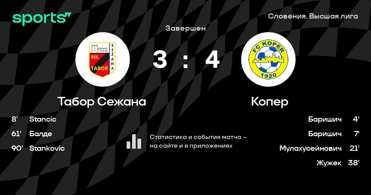 Копривец - Неманич, Бришки, Ristic, Damsen Kouao, Михалевич - Doukoure, Бабич, Макумбу - Stare, StancicЗапасные: Rener, Салкич, Hlad, Aliaj, Kompare, Specogna, Stankovic, Rovas, Балде