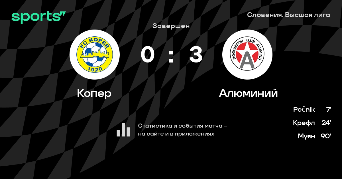 Копер – Алюминий: Копер побеждает в 3 последних очных матчах