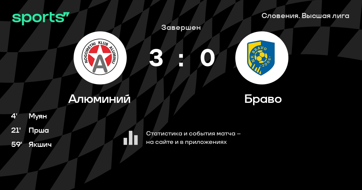 Браво не выигрывает в 5 последних матчах в гостях в турнире «Словения. Высшая лига»