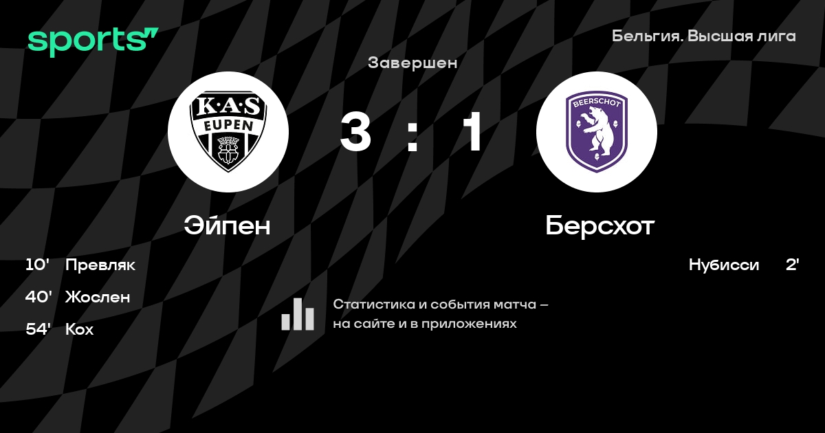 «Берсхот» разгромлен «Брюгге» 0:3. Вороговский отыграл тайм
