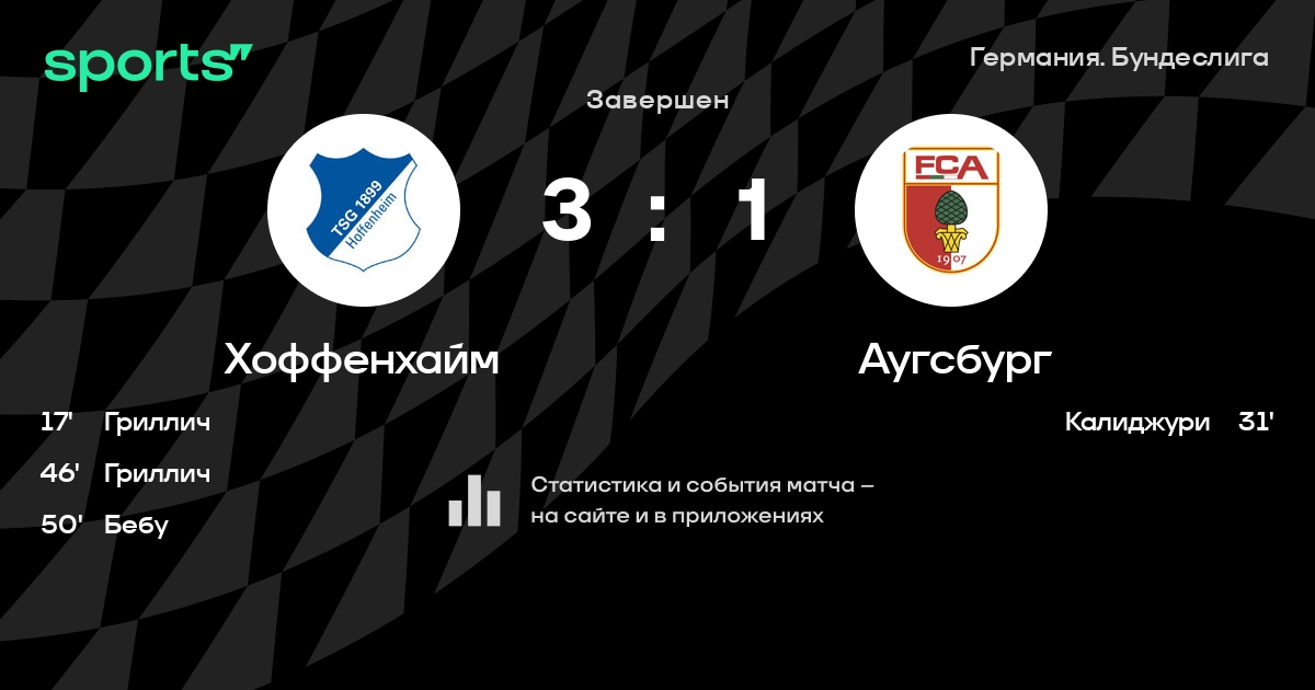 Чемпионат Германии. «Хоффенхайм» победил «Аугсбург» – 3:1