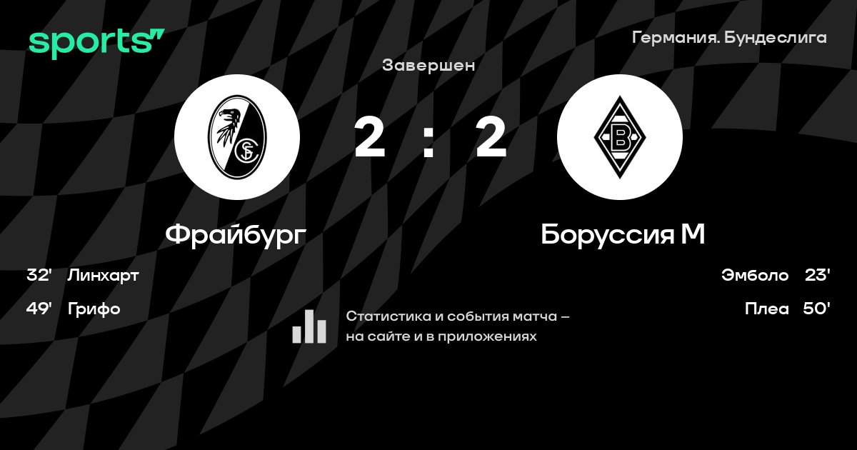 Зоммер - Вендт, Крамер, Гинтер, Лайнер - Нойхаус, Закария, Плеа, Штиндль, Вольф - ЭмболоЗапасные: Зиппель, Байер, Ланг, Лазаро, Поульсен, Бенеш, Херрманн, Тюрам, Траоре